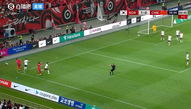 角色互换比赛补时最后阶段,韩国队疯狂在角旗区护球拖延时间