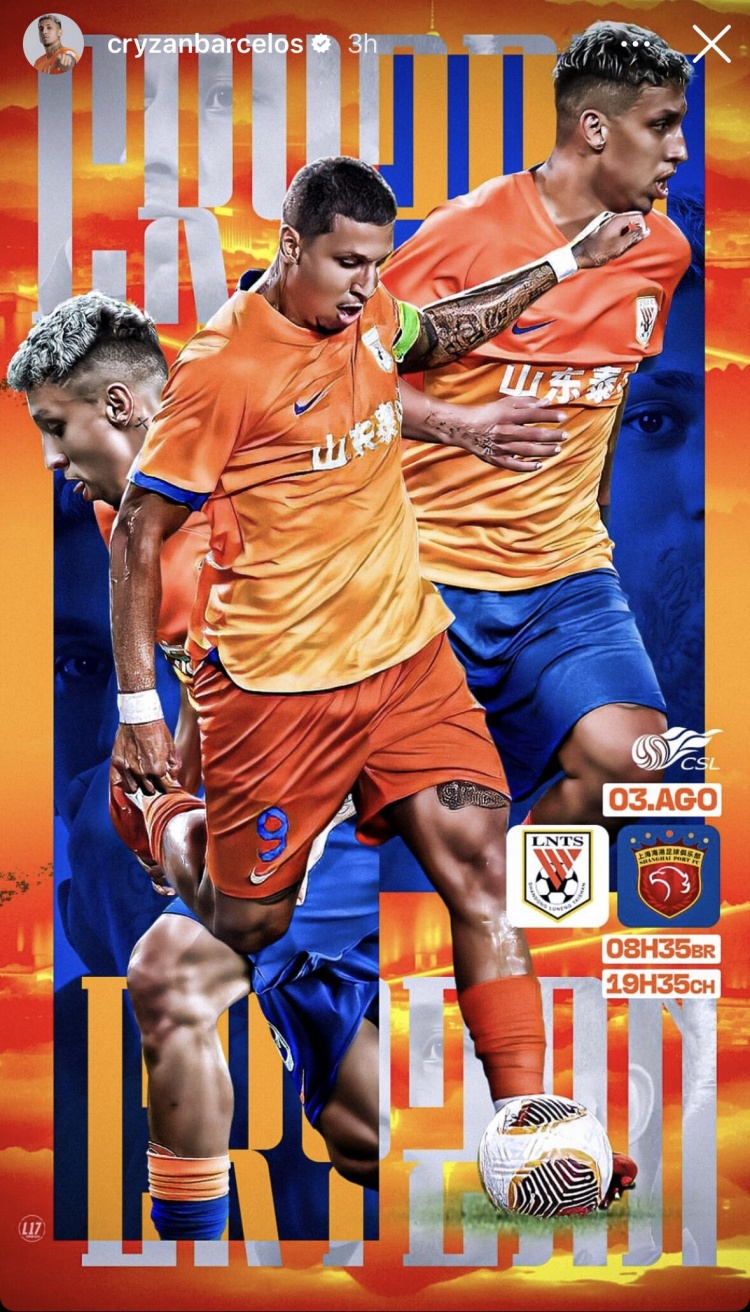 8月2日宣 今天,泰山外援克雷桑在社媒发布了对阵海港的个人海报。