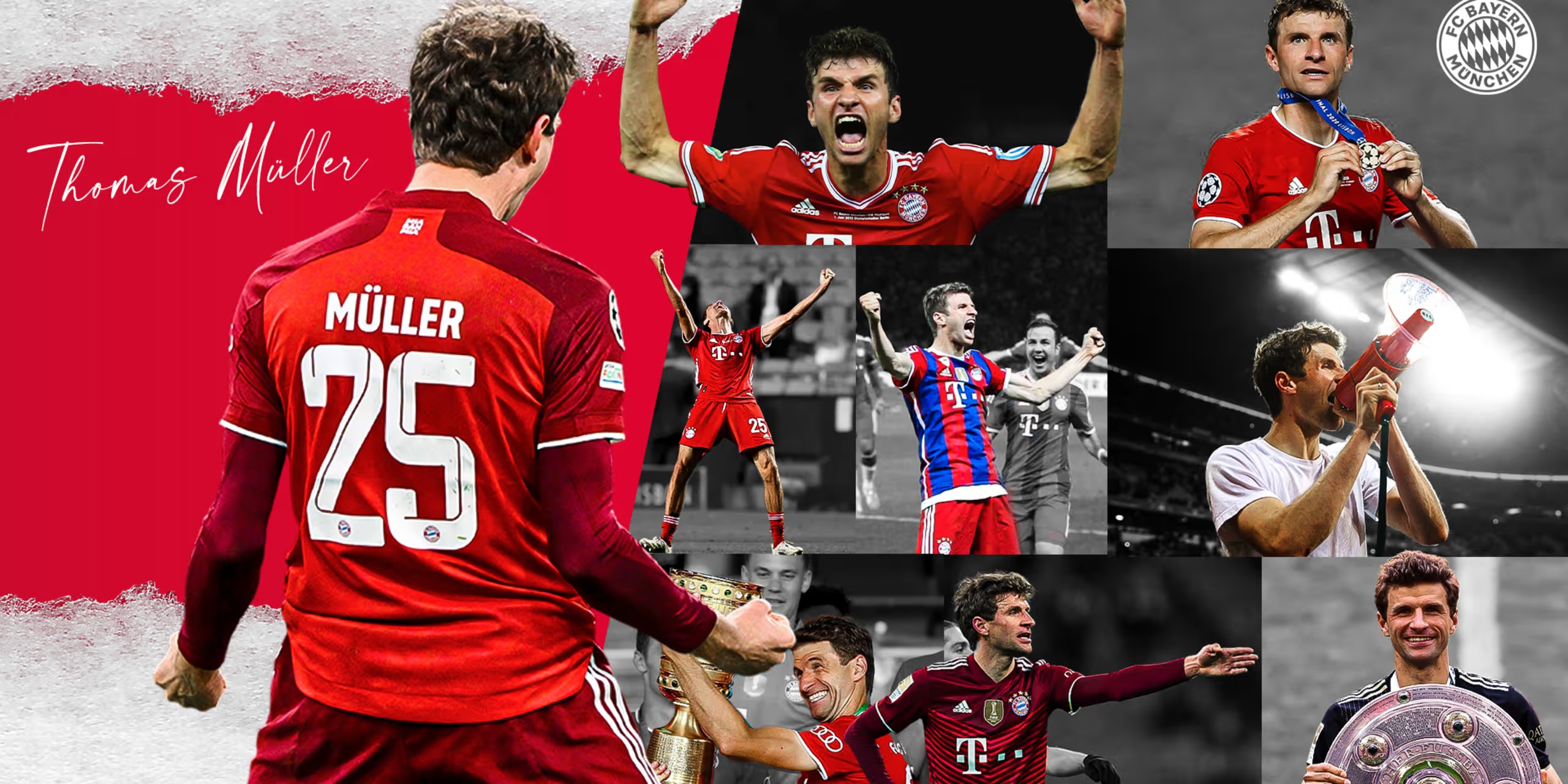 穆勒在年仅10岁时就加入了拜仁,过去的25年里从未离开过,他已经代表拜仁出战了743场比赛,贡献247球和273次助攻,随队赢得了2次欧冠冠军和12次德甲冠军等共32个冠军。