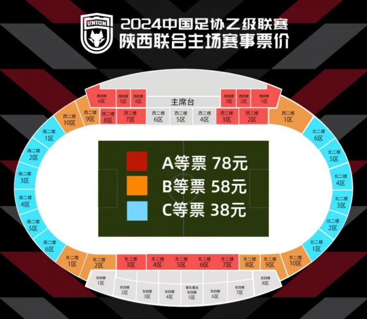 陕西大秦军团球迷协会:南二楼1区-南二楼6区