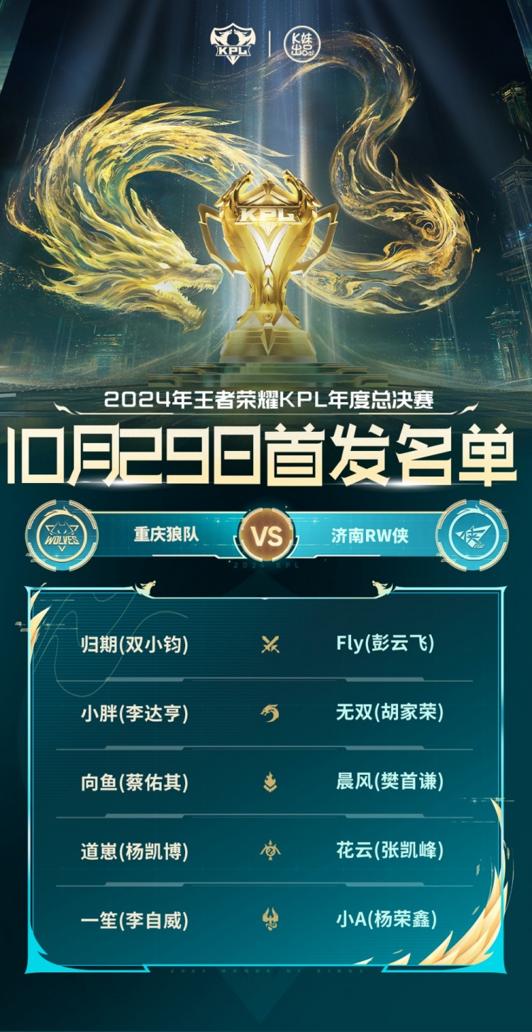 KPL年度总决赛首发名单:Fly再战老东家狼队小胖或成胜负手!