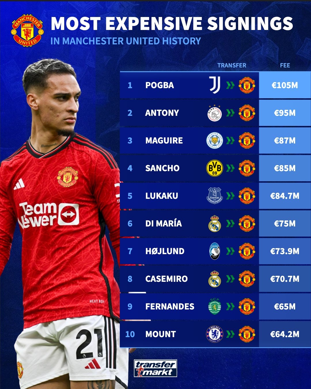 哪笔能算值曼联队史引援排行:博格巴1.05亿,安东尼芒特上榜