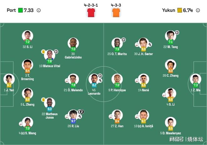 前锋:26-刘若钒【77分,49-李新翔】、30-加布里埃尔、45-莱昂纳多