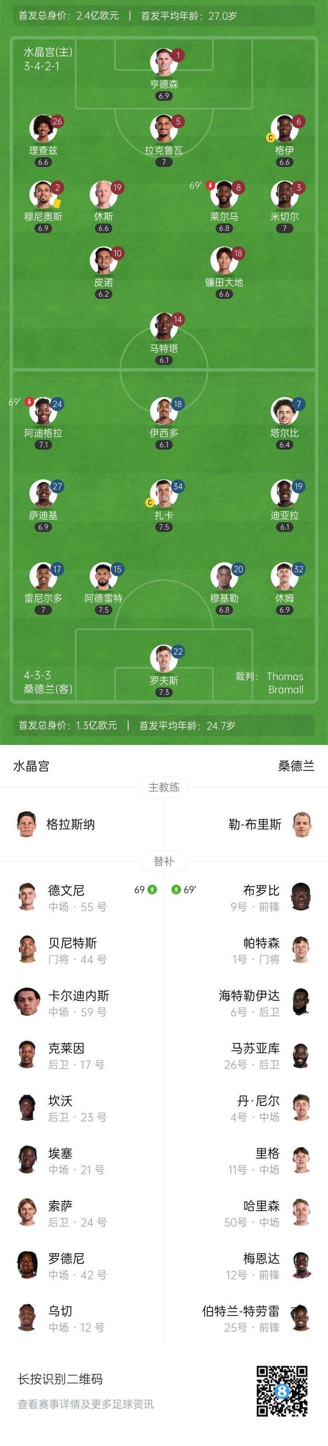 直播吧9月13日宣 北京时间9月13日晚上22:00,英超第4轮,水晶宫坐镇塞尔赫斯特公园球场迎战桑德兰。上半场,皮诺失单刀。下半场,镰田大地远射造威胁,罗夫斯屡屡救主。全场结束,水晶宫0-0桑德兰。本场过后,水晶宫1胜3平积6分排名第七,桑德兰2胜1平1负积7分排名第五。