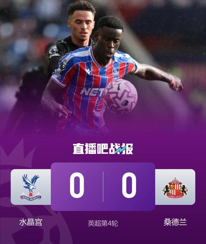 英超水晶宫00桑德兰4轮1胜3平仍不败皮诺失单刀罗夫斯屡救主