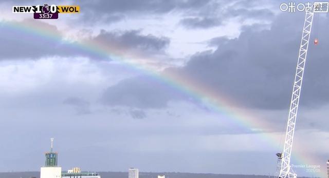 好运加持!沃尔特马德主场首秀破门后,镜头给到球场上空的彩虹