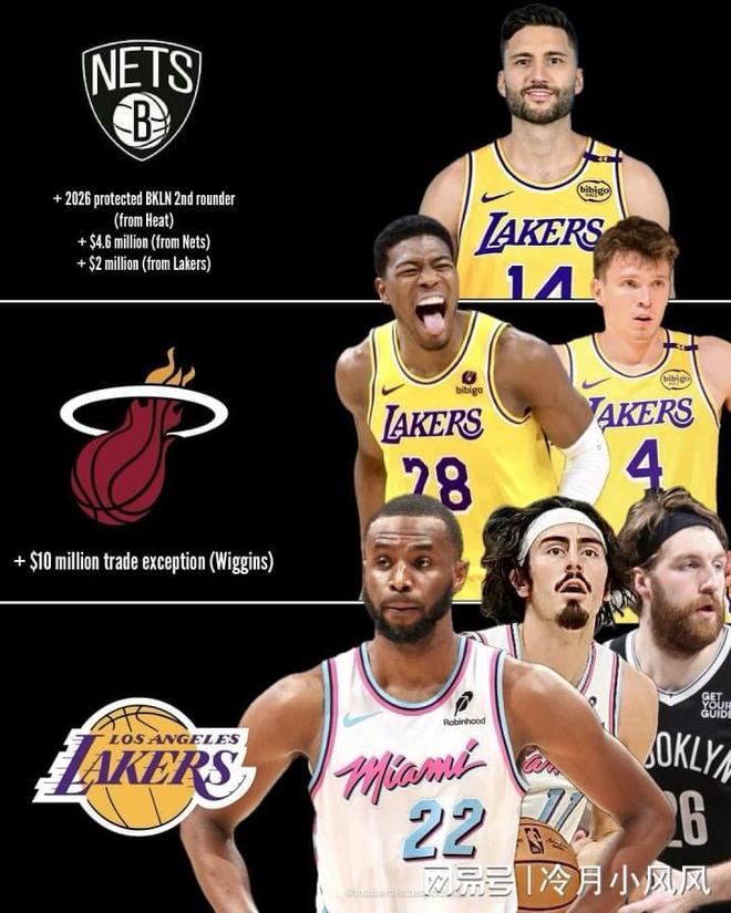晚些时候,BR记者Eric Pincus给出了一份涉及三队的方案,具体为湖人得到来自热火的威金斯和哈克斯,来自篮网的德鲁蒂米;热火得到来自湖人的八村塁、克内克特和一个价值1000w美元的交易特例;篮网得到来自湖人的克勒贝尔、26年来自热火的次轮签和660w美元现金(460w来自热火,200w来自湖人)。