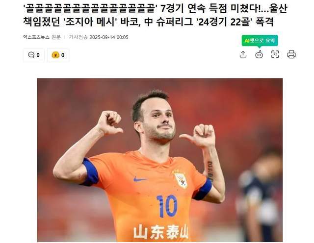 第二个,韩国媒体的反应耐人寻味。“NAVER”等多家媒体纷纷报道,称蔚山球迷非常想念瓦科。要知道,蔚山现代在他离开后战绩一落千丈,最近16场比赛只赢下1场,联赛排名跌至倒数第5。看到瓦科在中超连续爆发,蔚山球迷自然心里不是滋味,很多人直呼“放走他是巨大错误”。