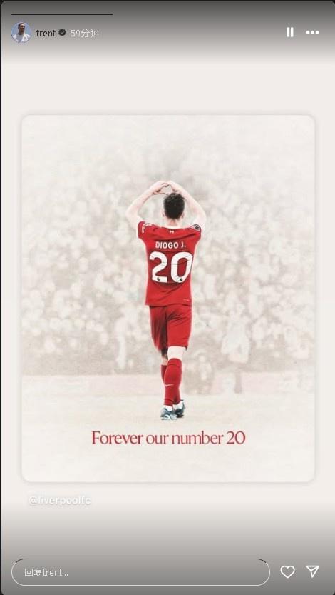 利物浦社媒用“永恒的20号”缅怀若塔加盟日,阿诺德转发