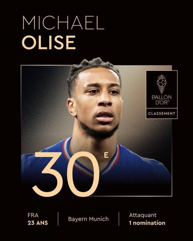 上赛季俱乐部+国家队63场22球24助攻,金球奖第30名:奥利塞