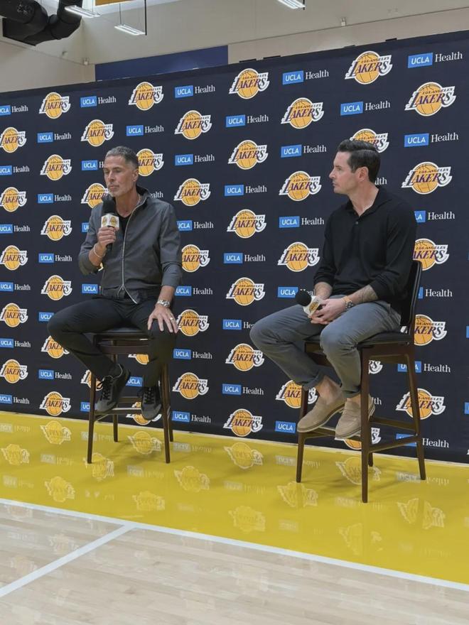 这个新闻发布会并非媒体日活动,因此没有球员参加,出席的就是湖人总经理佩林卡和主教练雷迪克。