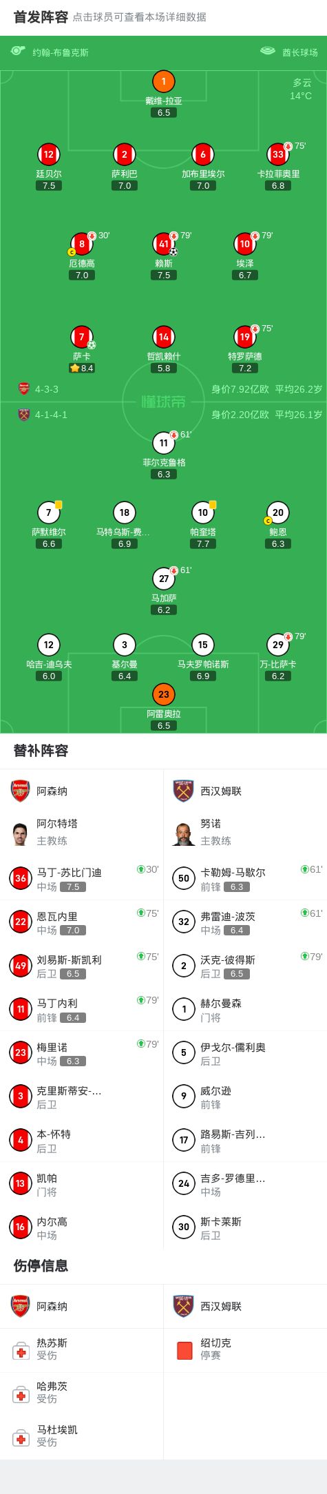 剑南春阿森纳20西汉姆联迎4连胜,赖斯破旧主,萨卡里点射