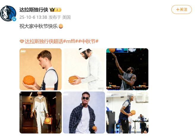 三状元出镜!达拉斯独行侠更新社媒:祝大家中秋节快乐