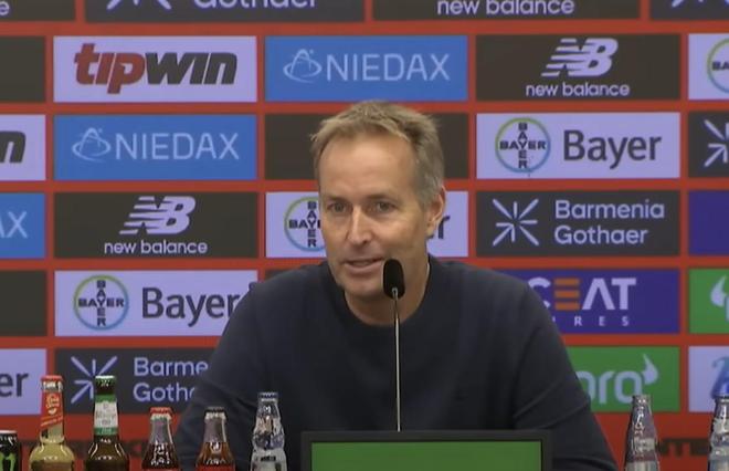北京时间10月4日,德甲第6轮,勒沃库森2-0柏林联合。赛后,勒沃库森主教练尤勒曼出席了发布会。