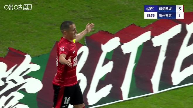 下半场易边再战,直到第70分钟,费利佩助攻莱切特扫射破门,成都蓉城2-1再度取得领先。第82分钟,罗慕洛断球后横向摆脱低射得手,最终成都蓉城3-1击败梅州客家,联赛取得10轮不败。