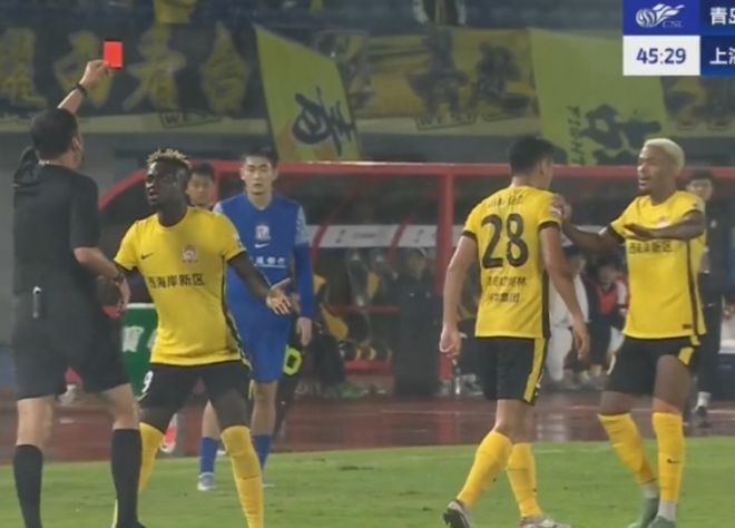 而在第45分钟,青岛西海岸另一名球员张呈栋,又因为追骂边裁,而被直接出示红牌。当时,西海岸一次定位球进攻,边裁示意越位在先。虽说通过慢镜头回放来看,边裁的判罚有很大争议,但是这不是张呈栋拿红牌的理由。首先,这个球西海岸并没有进;其次,张呈栋在裁判已经对他出示黄牌警告、并且队友反复上前拉着他让他“闭嘴”的情况下,仍然继续追骂裁判,这不就是明摆着要自讨红牌吗?