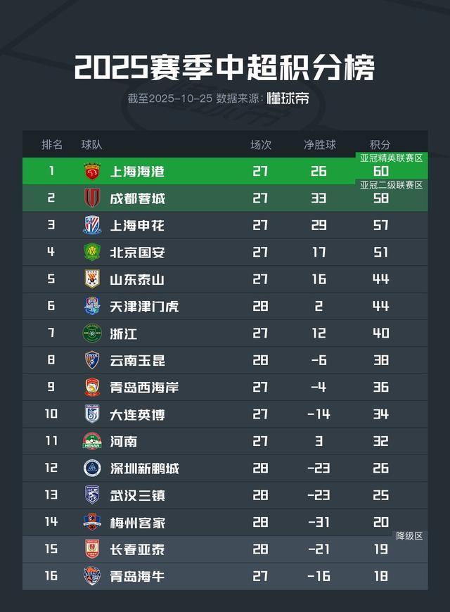 - 中超 | 随着申花01不敌广岛,海港、蓉城皆打平,亚冠最新出线形势出炉