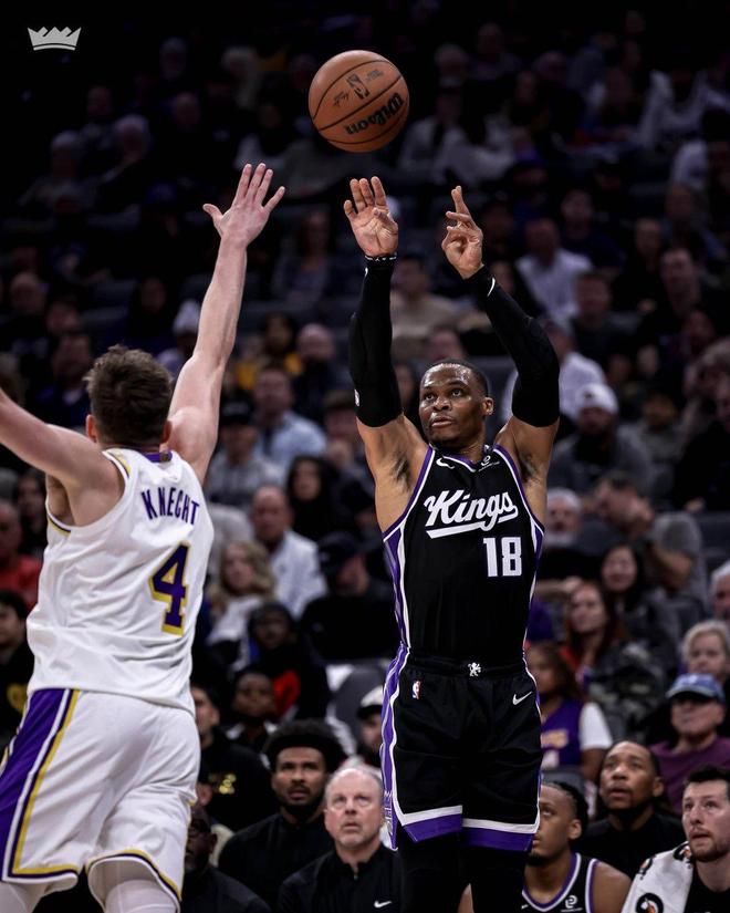 国王队后场球星拉塞尔威斯布鲁克,在此役展现了全能身手。作为湖人旧将,威少志在此战证明自己。威少上场27分钟,12投6中,三分球6投4中,罚球6中2,得到了18分6板6助攻1抢断的全面数据,并且只有2次失误。威少以50%的命中率,轰下了两队替补席的最高分。同时,威少以67%的命中率投进了全队此战最多的4记三分球。此外,威少的篮板和助攻数据,都高居全队第二。