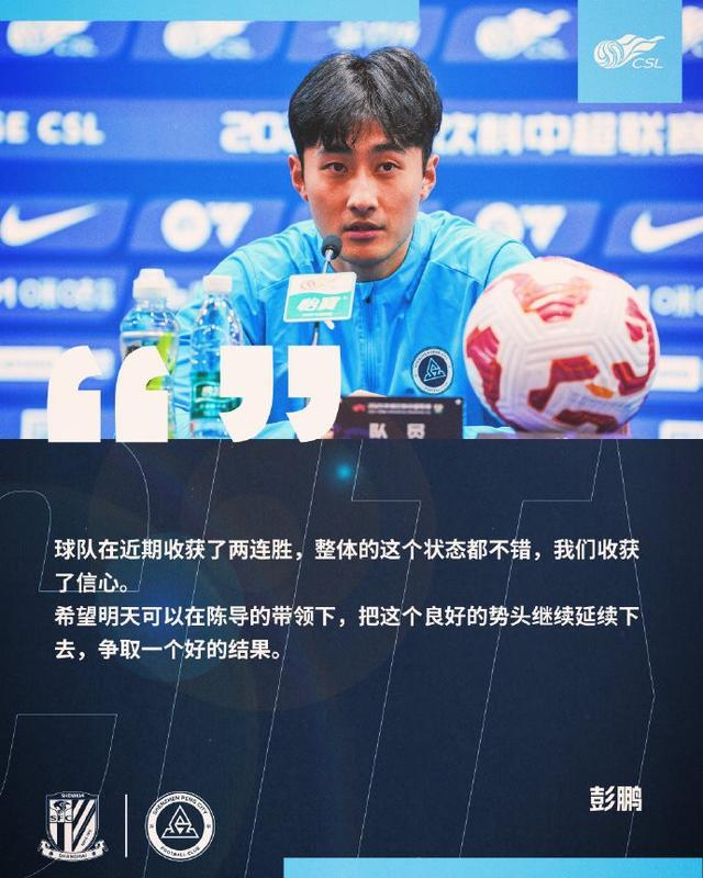 北京时间10月31日20:00,中超联赛第29轮,深圳新鹏城将客场挑战上海申花。今天傍晚,代理主教练陈涛和球员彭鹏出席了赛前发布会。陈涛表示,球队还没有百分百保级,仍要全力以赴。