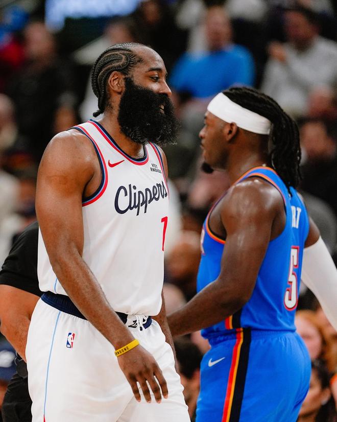哈登25+6+6+5记3分创NBA历史第2神迹,快船完败雷霆!亚历山大30+12创纪录!