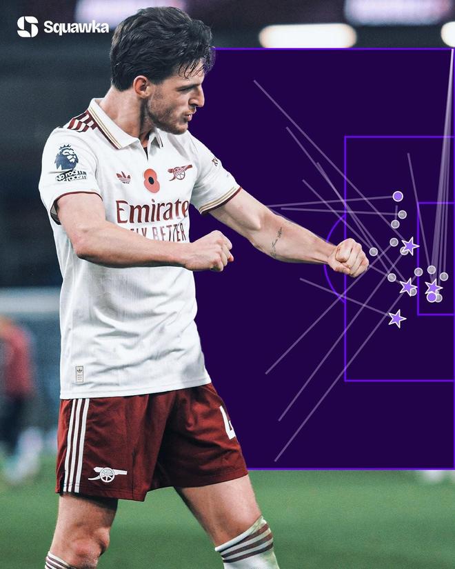 据统计,在2025年,赖斯在各项赛事中总共创造出23次重大机会,位列所有英超球员之首。