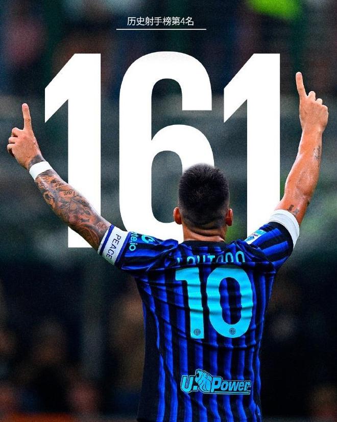 本场比赛的进球,也让劳塔罗的蓝黑军团生涯进球总数来到161球,国米队长与蓝黑名宿马佐拉一起,目前并列位居国米队史第四射手的宝座。这位阿根廷射手,正用一个个进球,一步步将自己铸就成为俱乐部的活传奇。
