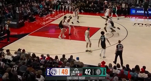 第四节开拓者谢登-夏普拿下6分,太阳吉莱斯皮拿下9分,最终开拓者110-127不敌太阳