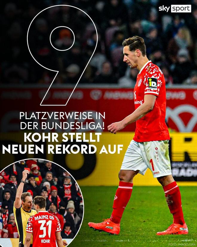 - 德甲 | 美因茨后卫科尔德甲生涯第9次染红,成德甲历史染红最多球员