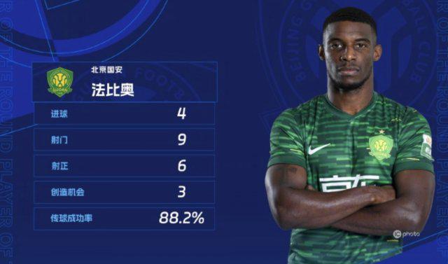 中超官方公布了第30轮最佳球员,北京国安外援前锋法比奥·阿布雷乌当选。 本场比赛,法比奥的9次射门有6次都命中门框范围,其中4次取得进球,他的传球成功率也高达88.2%。正是凭借这场比赛的“大四喜”,使得法比奥在射手榜上赶超山东泰山外援卡扎伊什维利,最终后来居上成为射手王。