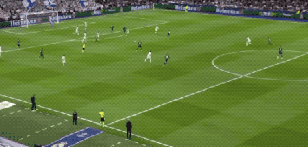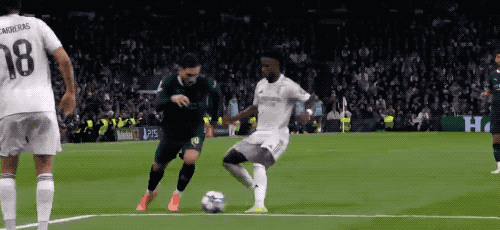 第50分钟,维尼修斯传中,罗德里戈假射真传,贝林厄姆的挑射,稍稍高出。